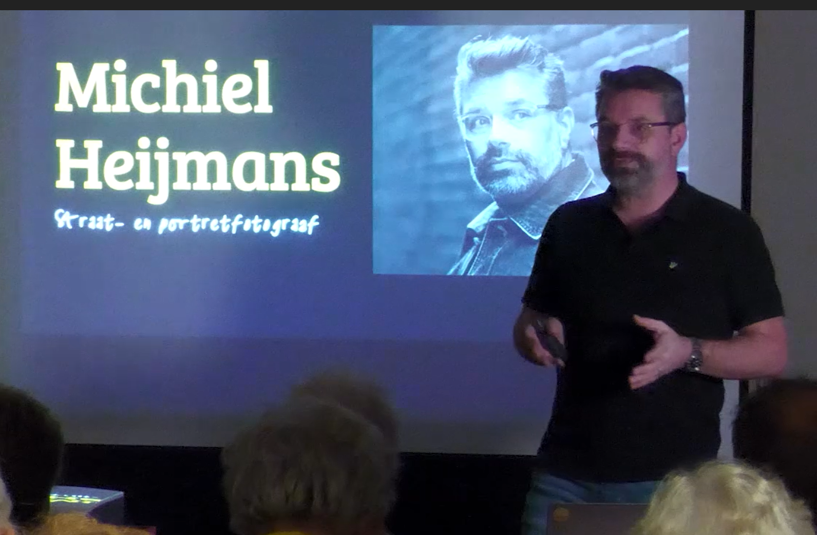Straatfotografie noemt Michiel ook wel "De kunst van het observeren". Meestal gaat hij zelf de straat op met een plan, wat te gaan vastleggen. Dat kan zeer gevarieerd zijn, zoals bijvoorbeeld: etende mensen - emoties van de voorbijgangers - huisdieren mee op de fiets - bepaalde kleuren die je tegenkomt onderweg - en ga zo nog maar even door. Ook vertelde hij over de regels die er zijn - wat mag een fotograaf Wel of Niet vastleggen op straat.